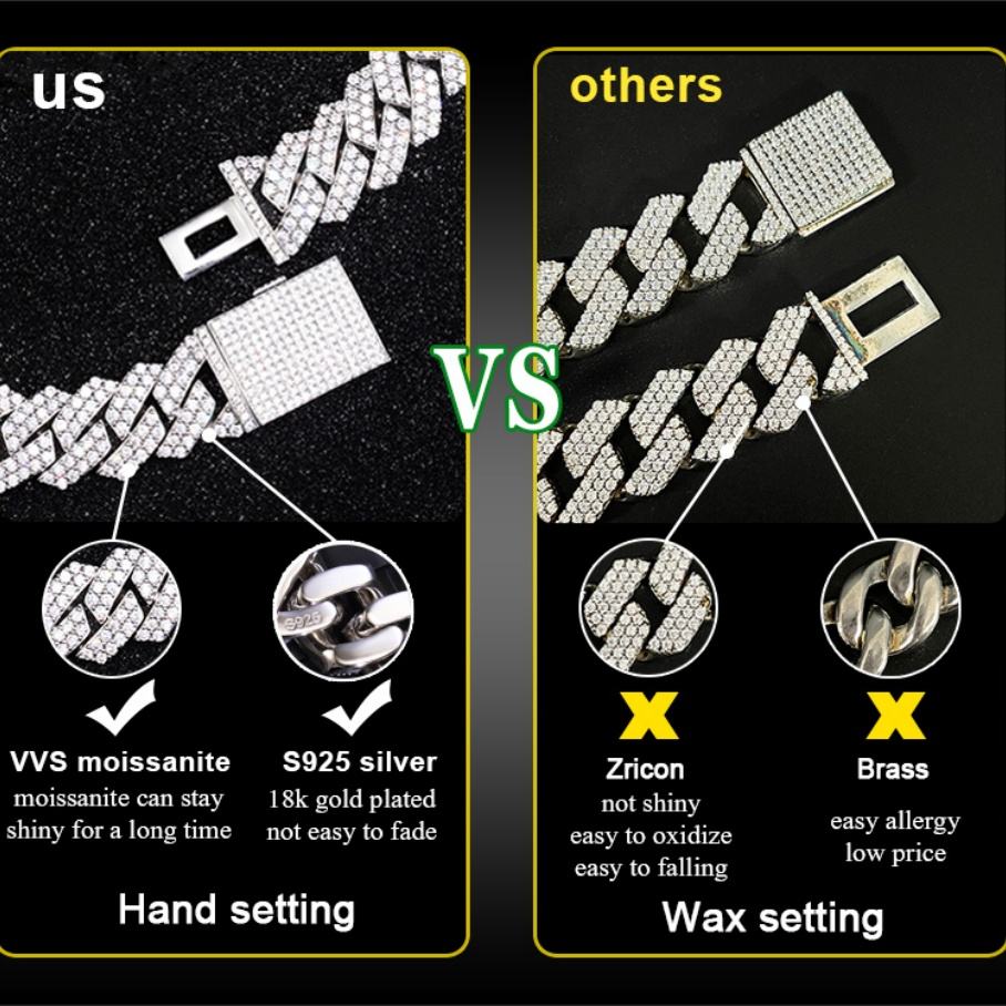 สร้อยคอโมอิสซาไนต์ผ่านการทดสอบเพชร 100% สำหรับผู้ชาย ชุบทอง S925 แบบไมอามีคิวบัน ไอซ์เอาท์ คิวบันลิงค์ สำหรับไลฟ์สไตล์ฮิปฮอป