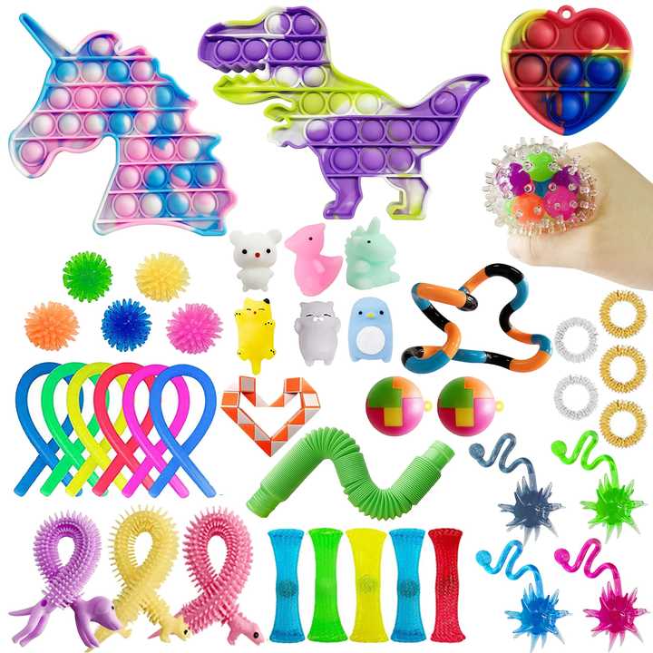 ชุดของเล่นฟิดเจ็ตเรืองแสงในที่มืด 100 ชิ้น ขั้นต่ำ 1 ชิ้น พร้อมของเล่นฟิดเจ็ตแบบเรียบง่ายฟรี