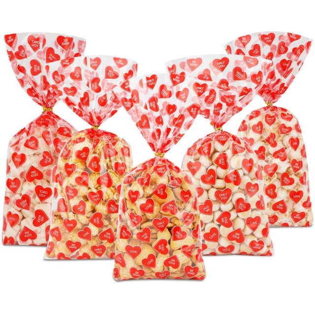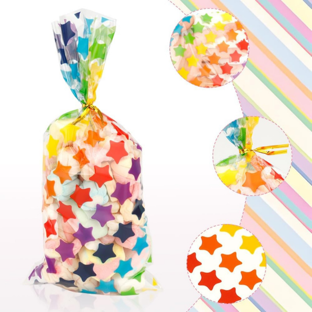 ถุงกระดาษแก้วพลาสติกแบบย่อยสลายได้100ชิ้นต่อชุดพร้อมสายรัดสำหรับห่อขนมและขนมหวานงานปาร์ตี้ของขวัญที่โปรดปราน