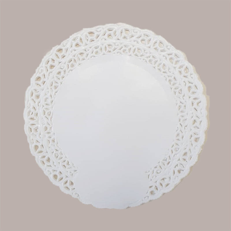 แผ่นลูกไม้กลมกันไขมันสีขาว100ชิ้นเส้นผ่านศูนย์กลาง200มม. สำหรับตกแต่งเค้ก