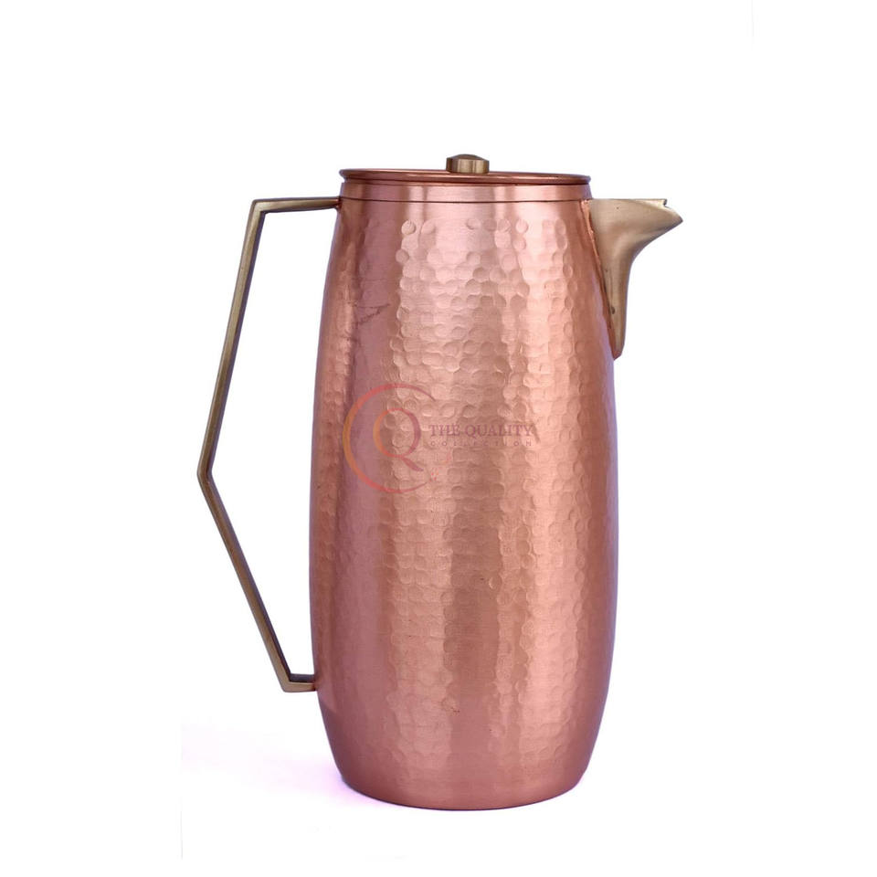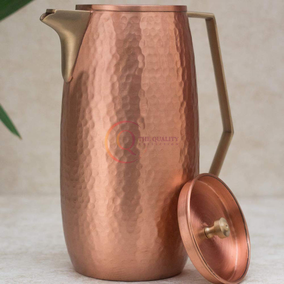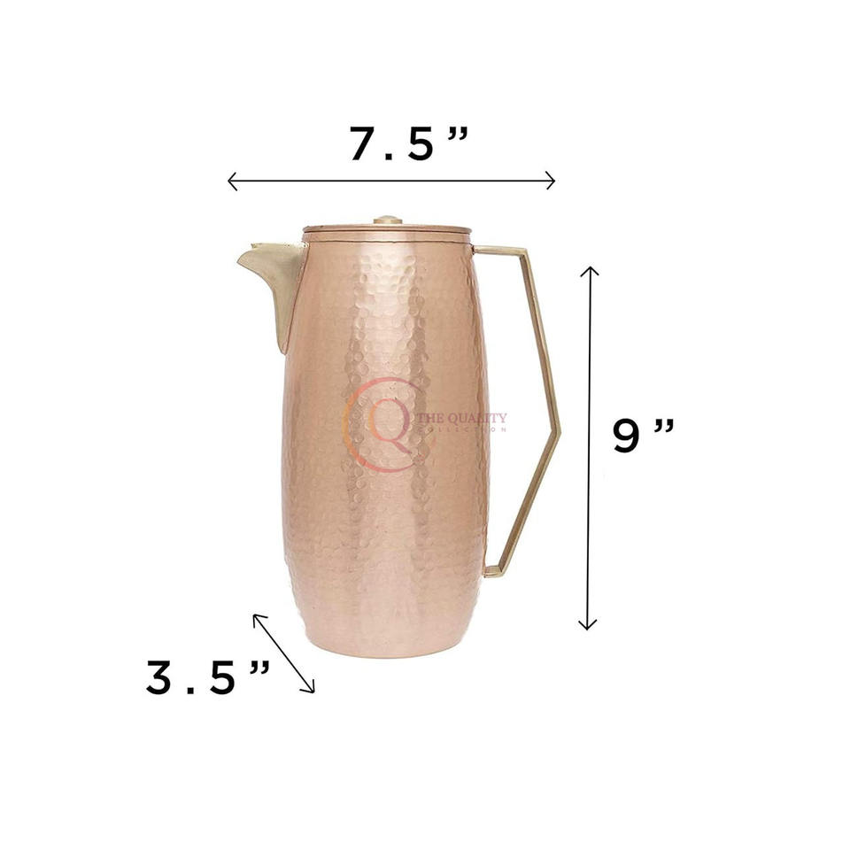 เหยือกน้ำทองแดงบริสุทธิ์100เปอร์เซ็นต์เหยือกน้ำแบบตุรกีทำจากทองแดงบริสุทธิ์ทำจากไม้ตีด้วยมือ