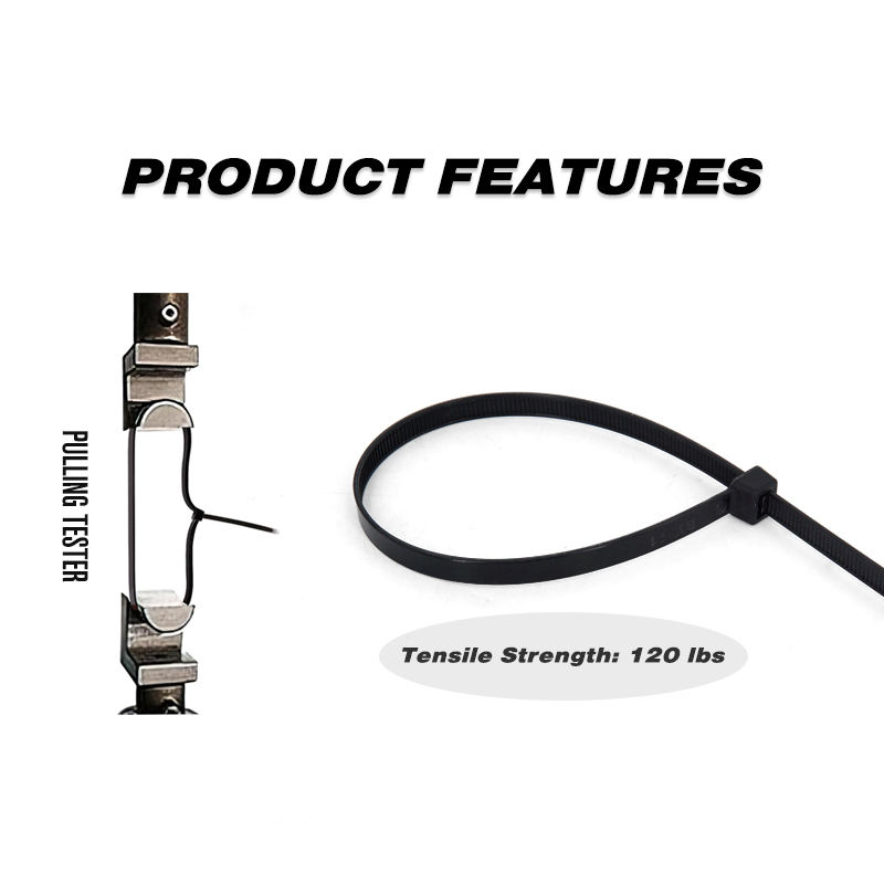 สายรัดไนลอนสีดำแบบหนา 15.5 นิ้ว รับน้ำหนักได้ 120 ปอนด์ (100 ชิ้น)ชื่อสินค้า