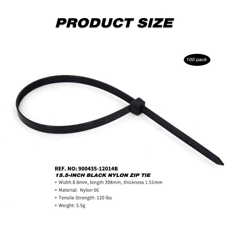 สายรัดเคเบิลไนลอน PA66 สีดำ ขนาด 15.5 นิ้ว รับน้ำหนักได้ 120 ปอนด์ จำนวน 100 ชิ้น สำหรับงานอุตสาหกรรม ยี่ห้อ OEM สำหรับรถยนต์และอุปกรณ์ทำความสะอาด