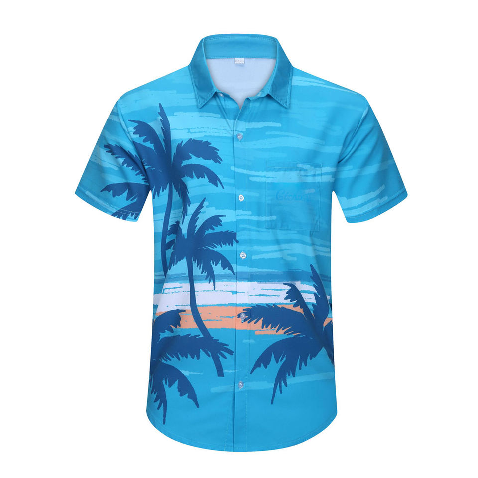 เสื้อฮาวายผู้ชาย แขนสั้น ผ้าถักน้ำหนักเบา ทรงปกติ ลายเรียบ ราคาถูก ผลิตจากโพลีเอสเตอร์ 100% และผ้าฝ้าย 100%