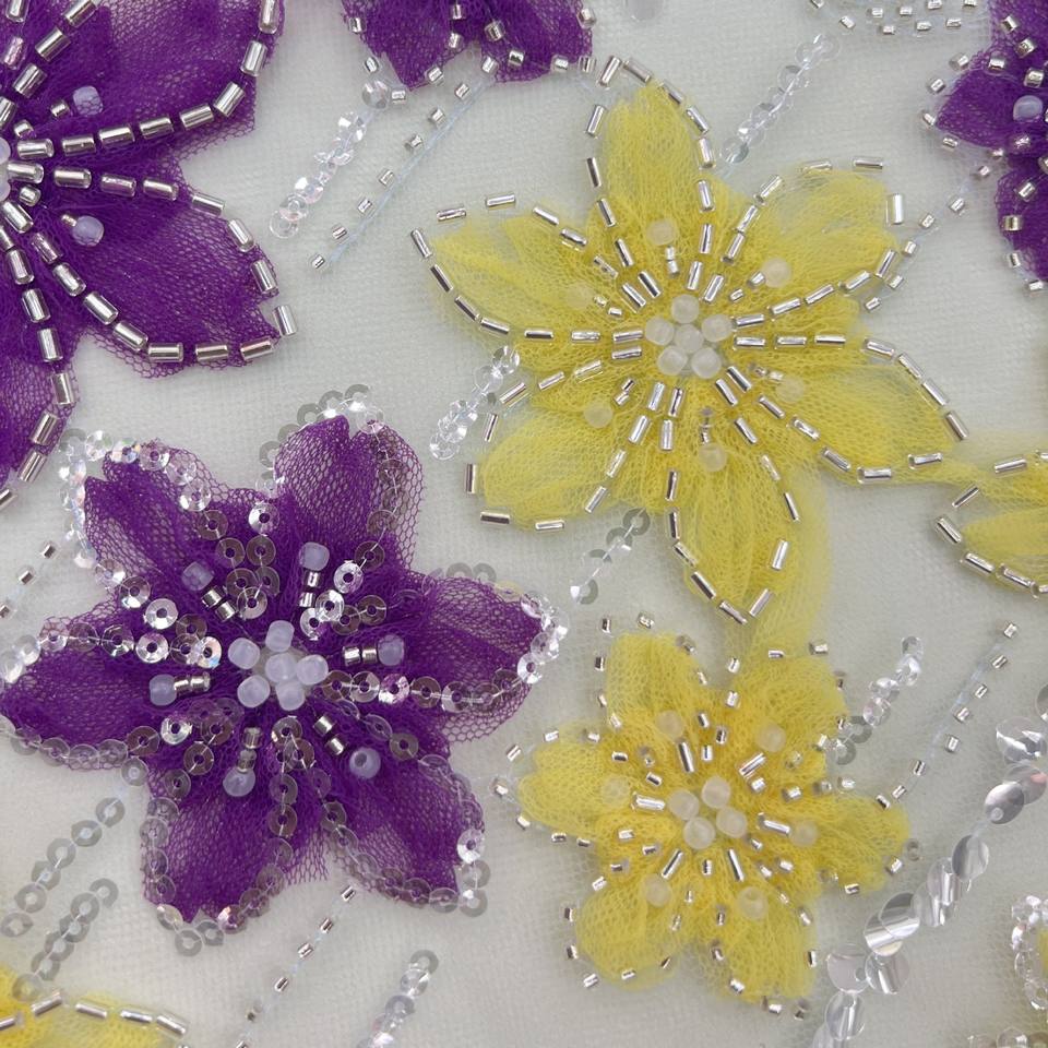 100% Polyester Beaded Embroidered Two-Tone Ribbon Fabric Factory Direct for Floral Wedding Dress Plain Style for Boys
