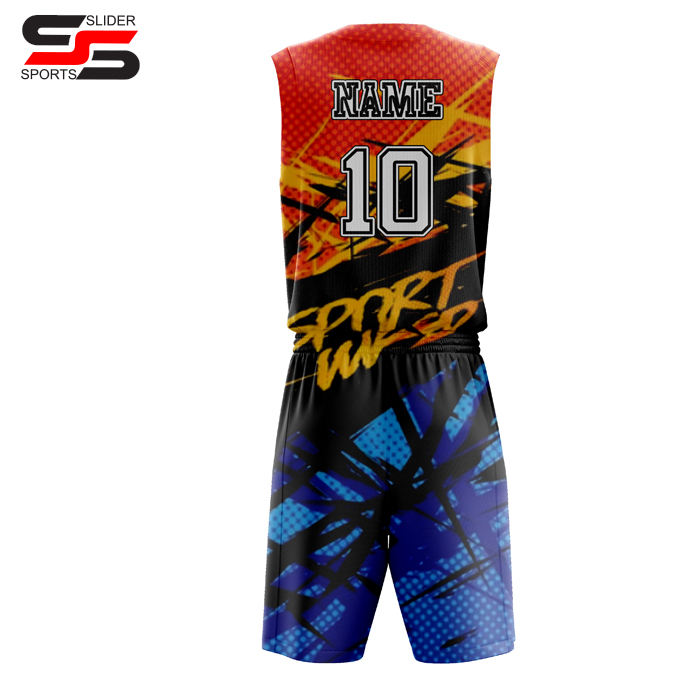 ชุดบาสเก็ตบอลโพลีเอสเตอร์100% เครื่องแบบกีฬาบาสเก็ตบอลดีไซน์ใหม่ตามสั่ง