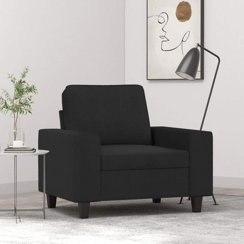 เก้าอี้โซฟาเดี่ยวสีดำโพลีเอสเตอร์ 100% พร้อมโครงโลหะเท็กซ์ไทล์และโฟมสำหรับห้องนั่งเล่น