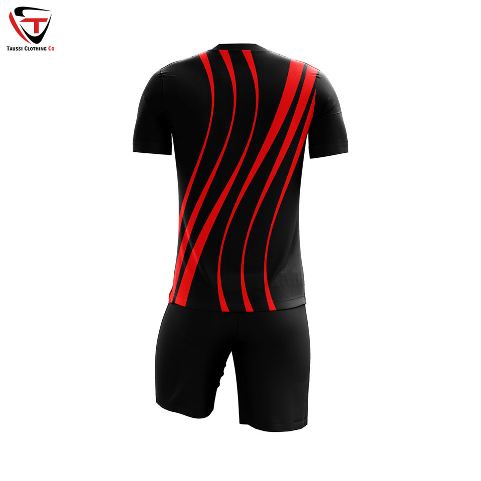 ชุดฟุตบอลแบบกำหนดเองผ้าโพลีเอสเตอร์100% พิมพ์โลโก้แบบตัดอัตโนมัติสำหรับทีมขายส่งจำนวนมาก