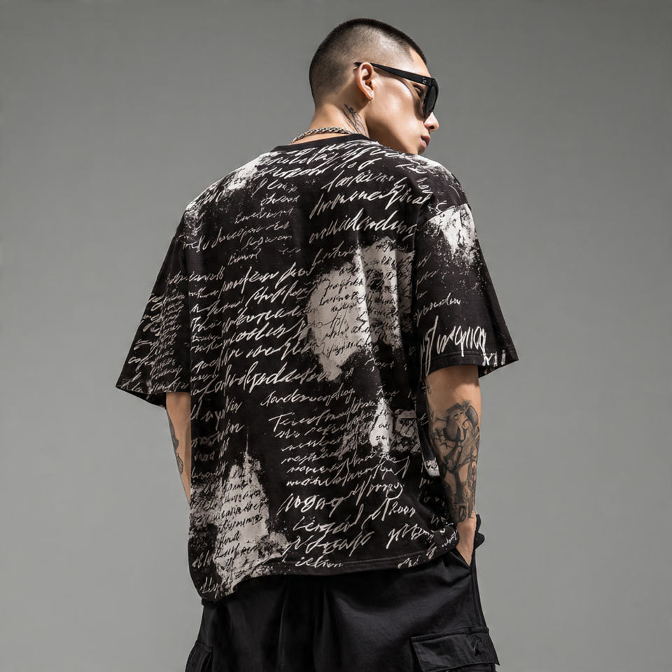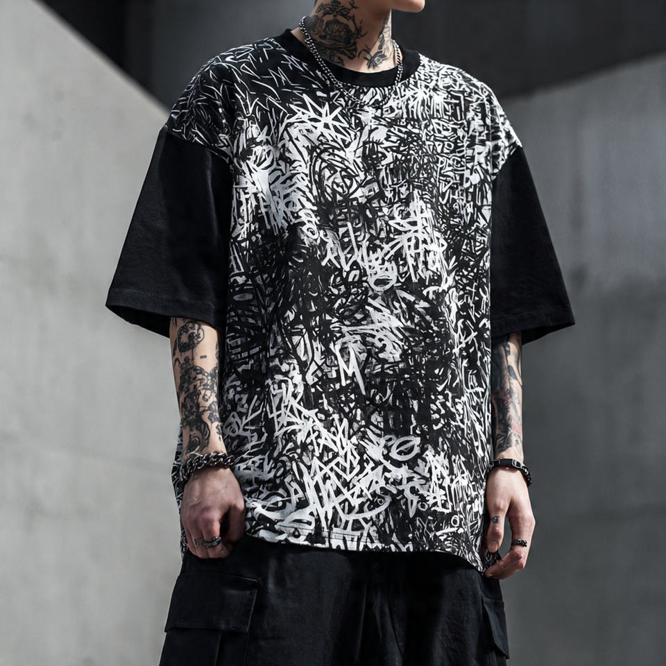 เสื้อยืดผู้ชายทรงไหล่ตก พิมพ์ลายซับลิเมชั่น