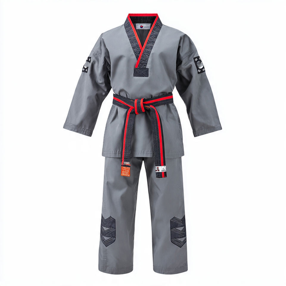 ชุดเทควันโดผ้าฝ้ายโพลีเอสเตอร์ 100% ชุดฝึกซ้อม MMA ชุดนักกีฬาเทควันโด รับสกรีนโลโก้ ชุดเทควันโด