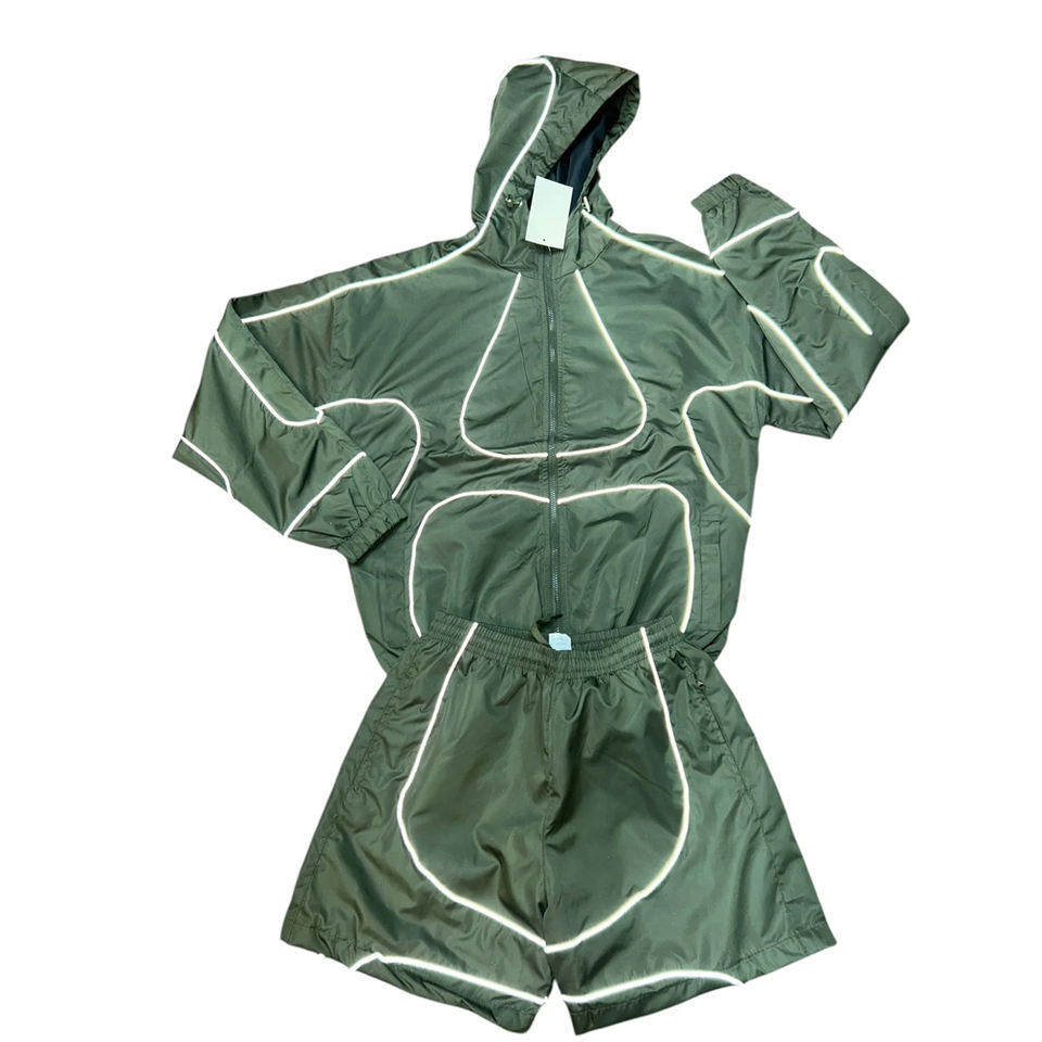 ชุดวอร์มกันลมแบบกำหนดเอง 100% โพลีเอสเตอร์ ชุดแจ็คเก็ตกันลมสะท้อนแสงและกางเกงขาสั้น สำหรับยิม คลับ และวิทยาลัย
