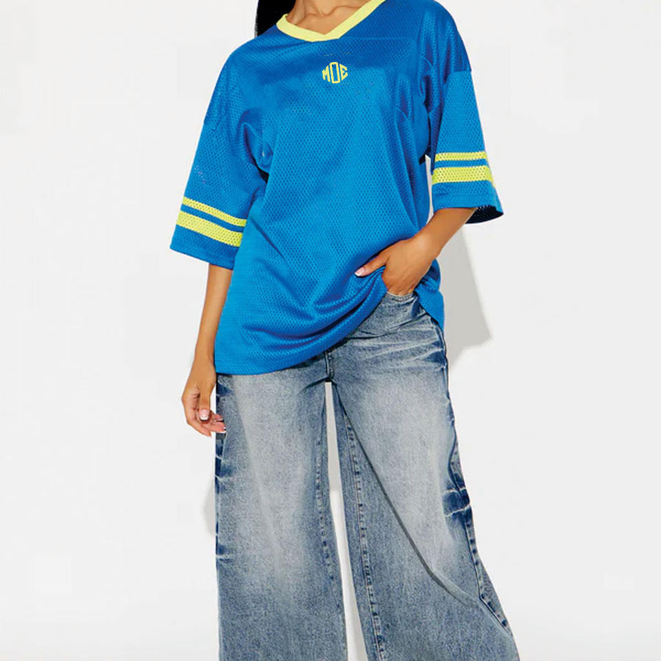 เสื้อเจอร์ซีย์อเมริกันฟุตบอลทรงบ็อกซี่แบบครอปโอเวอร์ไซส์สไตล์วินเทจสตรีทแวร์ผ้าโพลีเอสเตอร์ 100% สั่งทำได้ตามต้องการ พิมพ์ลายแบบซับลิเมชั่น