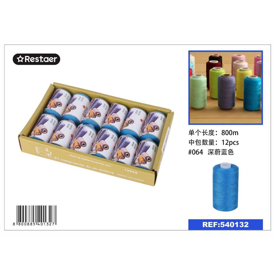 ด้ายโพลีเอสเตอร์สีน้ำเงินเข้มยาว800เมตร100% ความคงทนสูงวัสดุเย็บมีลายย้อมสีสำหรับรองเท้า