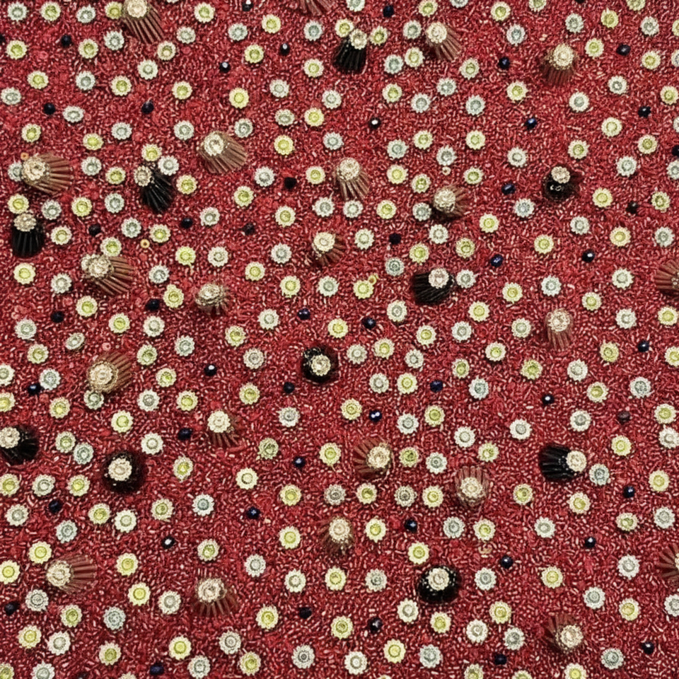 ผ้าตาข่ายโพลีเอสเตอร์ออร์แกนิกสำหรับเด็กผู้หญิงผ้าลูกไม้หนักแบบซับซ้อนประดับด้วยลูกปัดและเป็นมิตรต่อสิ่งแวดล้อม100%