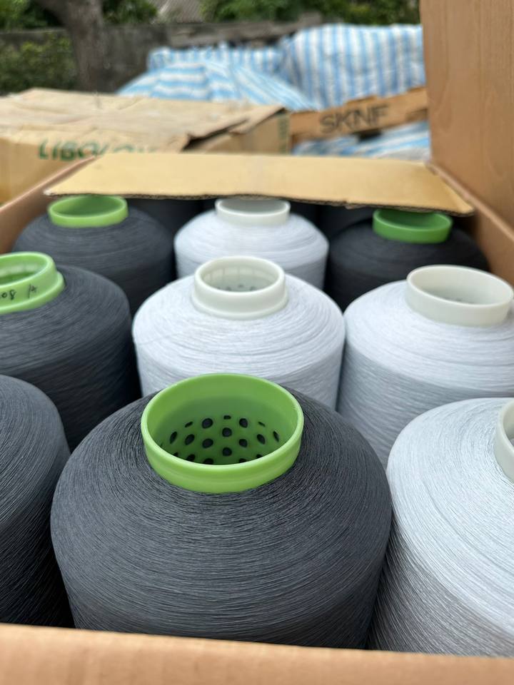 เส้นด้ายโพลีเอสเตอร์ 100% เป็นมิตรกับสิ่งแวดล้อม ย้อมสีแล้ว ยืดหยุ่นสูงและทนทาน เหมาะสำหรับงานถัก เย็บ ทอ สำหรับเสื้อผ้าด้านนอกหรือด้านใน ผลิตในไต้หวัน