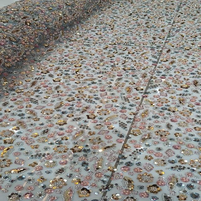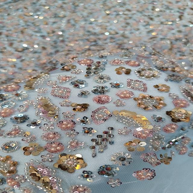 ผ้าโพลีเอสเตอร์100% สำหรับชุดแต่งงานปักด้วยมือเย็บด้วยลูกปัดผ้าทอลายถักสำหรับเสื้อนำเข้า