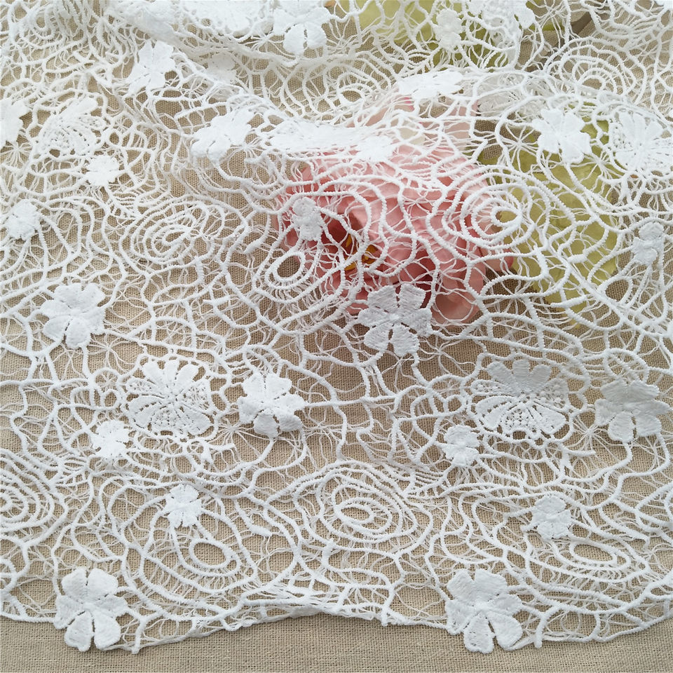ผ้าลูกไม้ตาข่ายไหมแอฟริกันที่ยั่งยืน 100% โพลีเอสเตอร์ ลายดอกไม้ปักละลายน้ำได้ สำหรับเสื้อผ้า กระเป๋า รองเท้า และของตกแต่งบ้าน