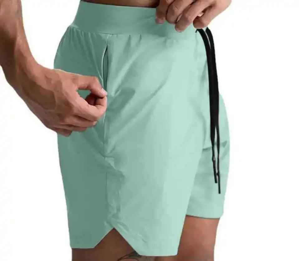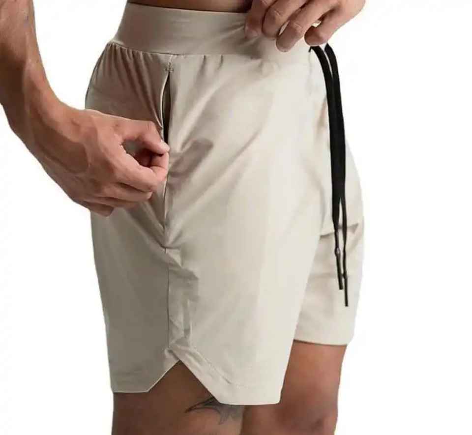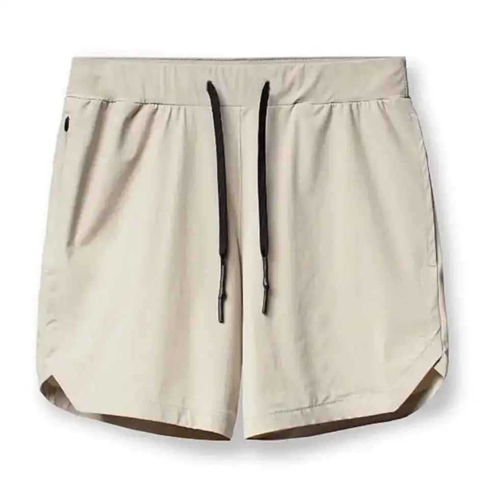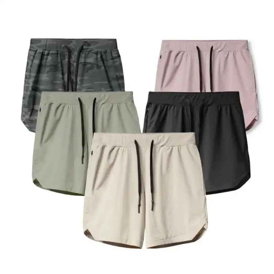 ชุดกางเกงขาสั้นผู้ชายผ้าโพลีเอสเตอร์100% สูงสีทึบพิมพ์โลโก้กางเกงยางยืดระบายอากาศน้ำหนักเบาแห้งเร็ว