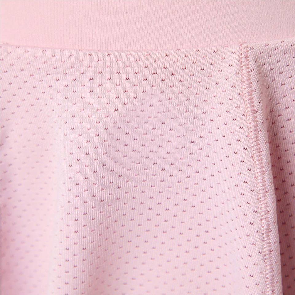 กระโปรงผ้าโพลีเอสเตอร์รัดรูปของผู้หญิงกระโปรงระบายอากาศสีชมพูเอวสูงผ้าตาข่ายแบบรัดกล้ามเนื้อ100%