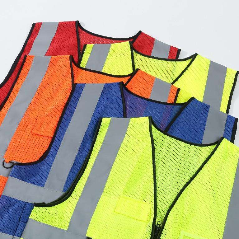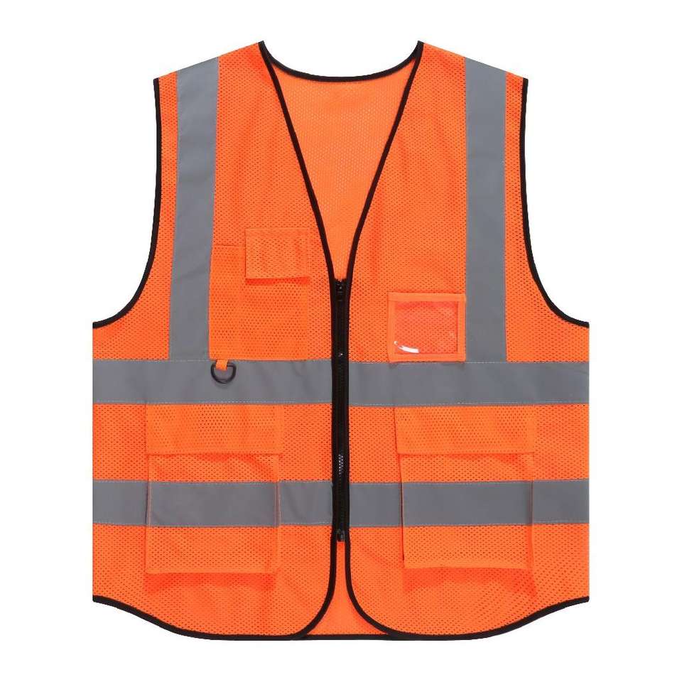 เสื้อกั๊กสะท้อนแสงสำหรับผู้ชายชุดใส่ทำงานแขนกุดผ้าถักจากโพลีเอสเตอร์มีกระเป๋าหลาย100%