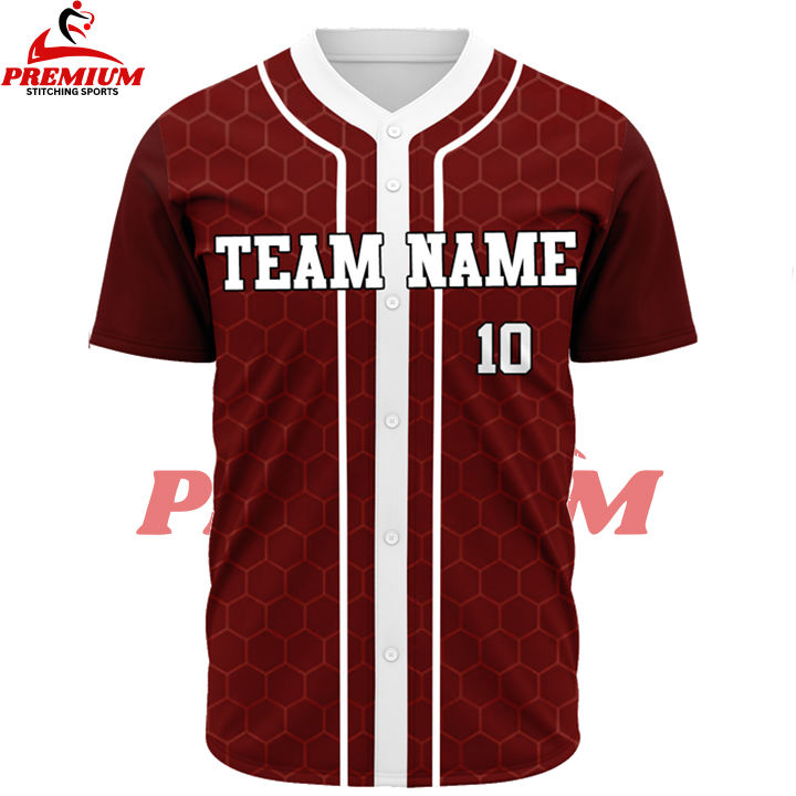 เสื้อเบสบอลแบบติดกระดุมเสื้อซอฟต์บอลทำจากโพลีเอสเตอร์100% ชุดเครื่องแบบทีมขายส่งเสื้อเบสบอลแบบกำหนดเอง