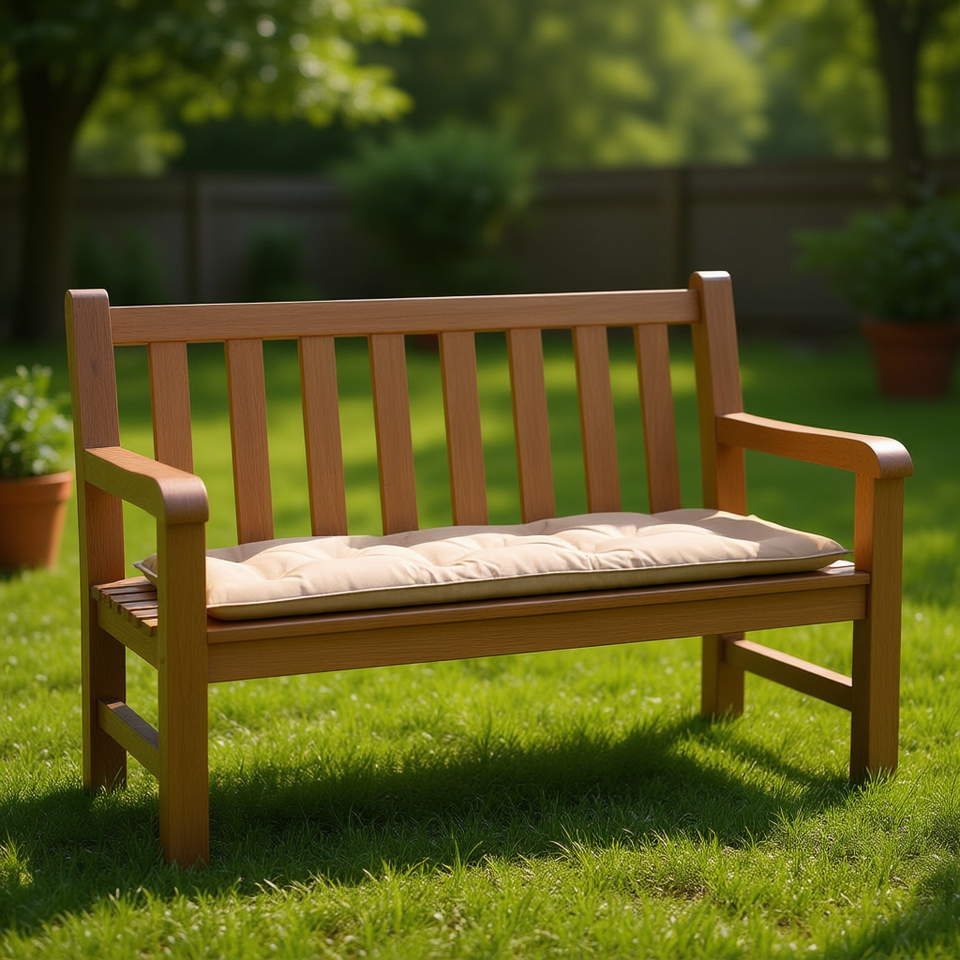 เบาะรองนั่งสำหรับสวนกลางแจ้ง สีเบจ รูปทรงสี่เหลี่ยมผืนผ้า ผลิตจากโพลีเอสเตอร์ 100% แบบเย็บติดกัน ถอดซักได้ ใช้ได้ทุกฤดู