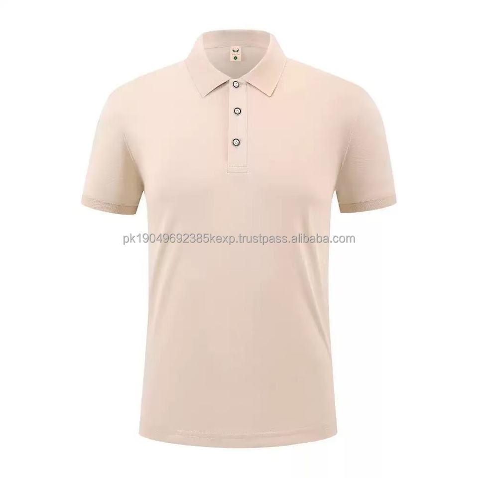 เสื้อยืดโปโลสำหรับผู้ชายโพลีเอสเตอร์สีพื้นระบายอากาศได้ดีเนื้อผ้าโพลีเอสเตอร์สีพื้นมี100%