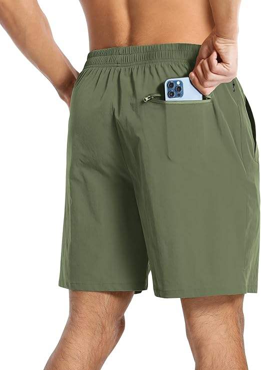 กางเกงขาสั้นเล่นยิมของผู้ชายโพลีเอสเตอร์100% กระเป๋าแบบปลอดภัยสำหรับออกกำลังกายวิ่งฝึกซ้อมผ้ายืดสีทึบกระเป๋าสำหรับผู้ชาย