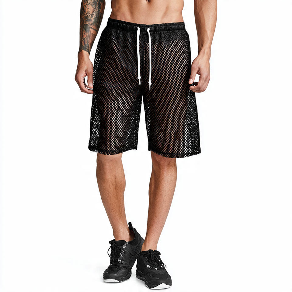 กางเกงชายหาดผ้าตาข่ายโพลีเอสเตอร์ 100% แบบกำหนดเองได้ น้ำหนักเบา แห้งเร็ว กางเกงตาข่ายลำลองสำหรับผู้ชาย กางเกงตาข่ายซีทรูสำหรับผู้ชาย