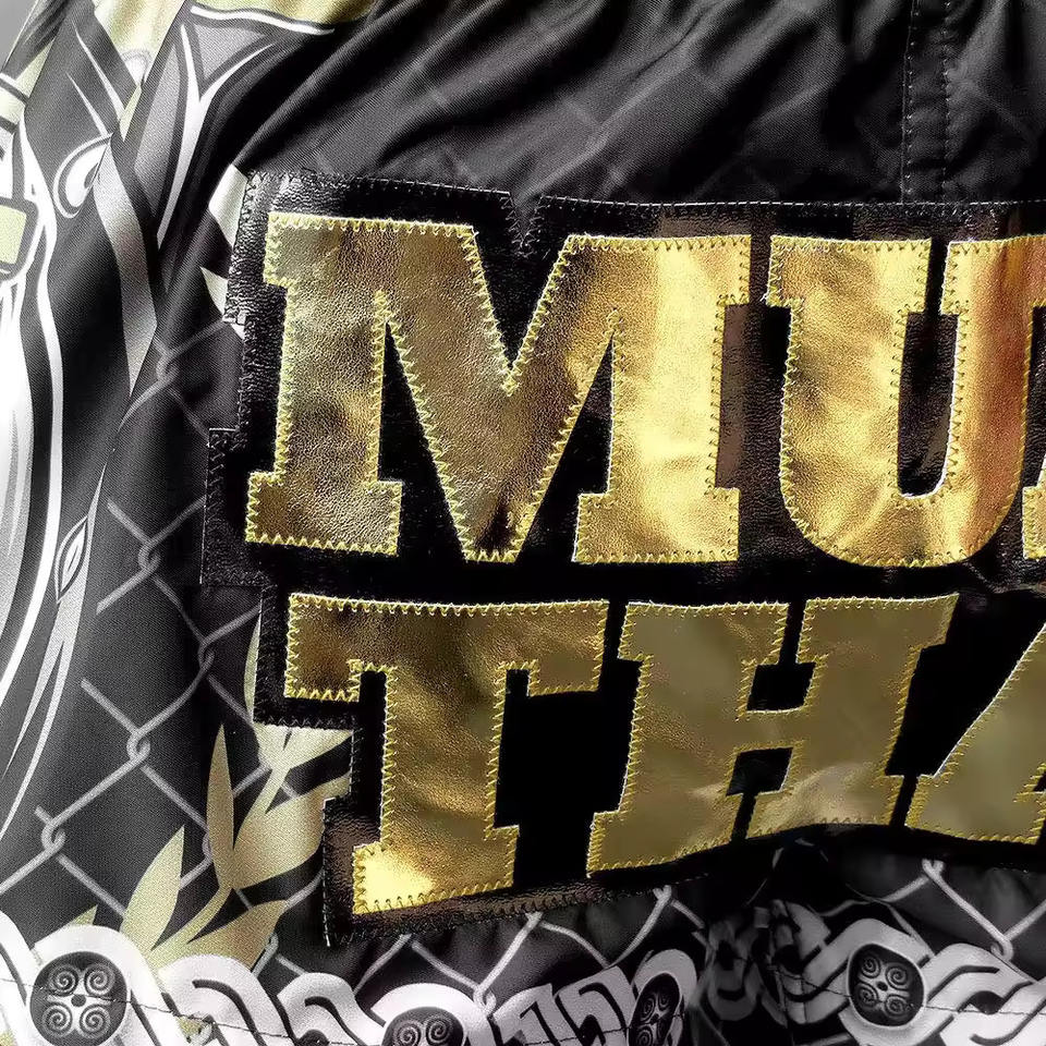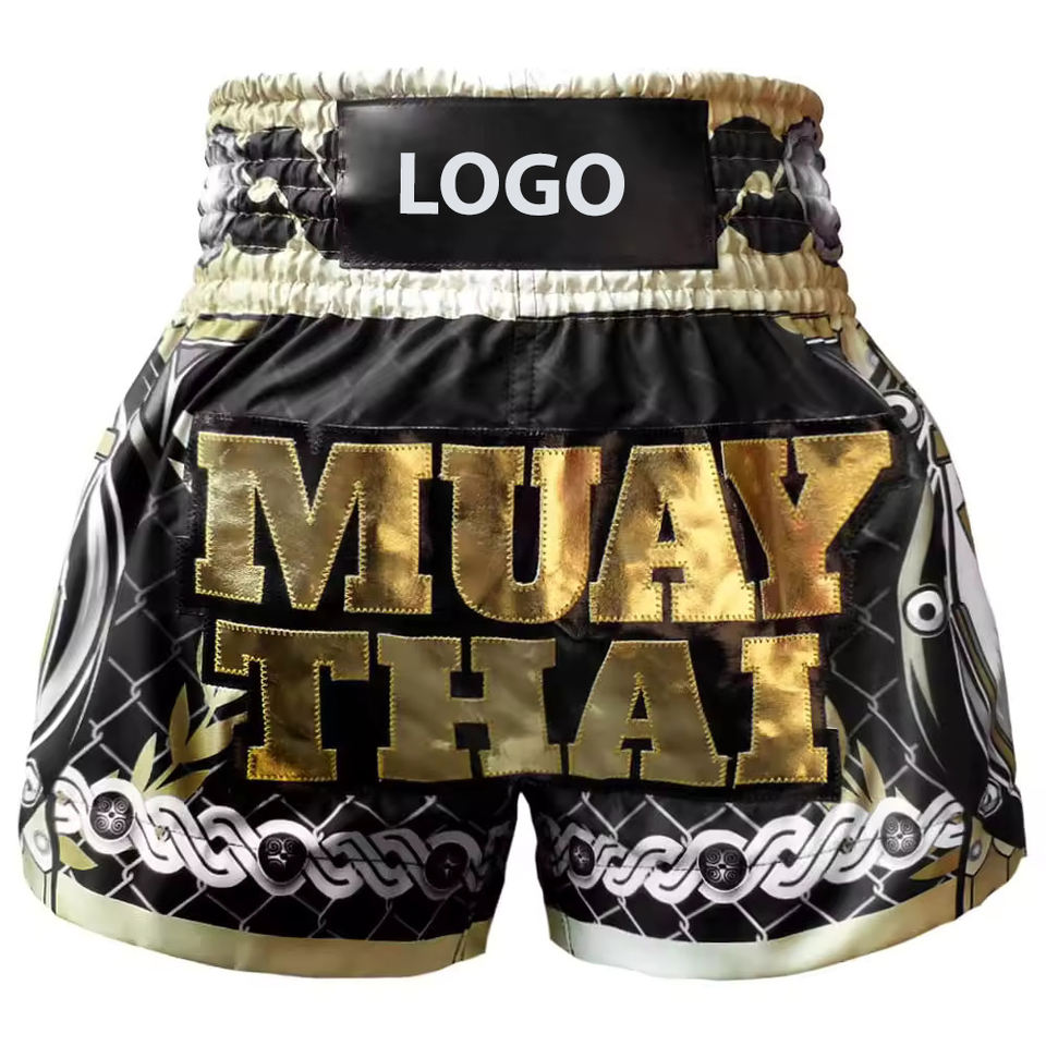 กางเกงขาสั้นผ้าโพลีเอสเตอร์100% สำหรับมวยไทยใช้ได้ทั้งชายและหญิงกางเกงกีฬาพิมพ์ลายซับลิเมชันกางเกงมวย MMA แบบสั้นออกแบบโลโก้ได้ตามต้องการ
