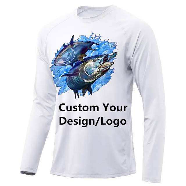 เสื้อเจอร์ซีย์แขนยาว 90% โพลีเอสเตอร์+10% สแปนเด็กซ์ UPF 50 กันน้ำ แห้งเร็ว ทรงคอกลม ระบายอากาศได้ดี เหมาะสำหรับออกกำลังกาย พิมพ์ลายได้ตามต้องการ สำหรับตกปลา