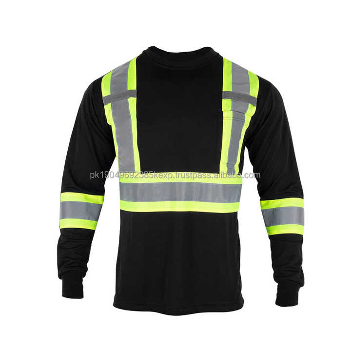 เสื้อยืดนิรภัยโพลีเอสเตอร์ 100% ขายส่ง เสื้อทำงานสะท้อนแสงสำหรับฤดูหนาว แขนยาว สำหรับผู้ชาย