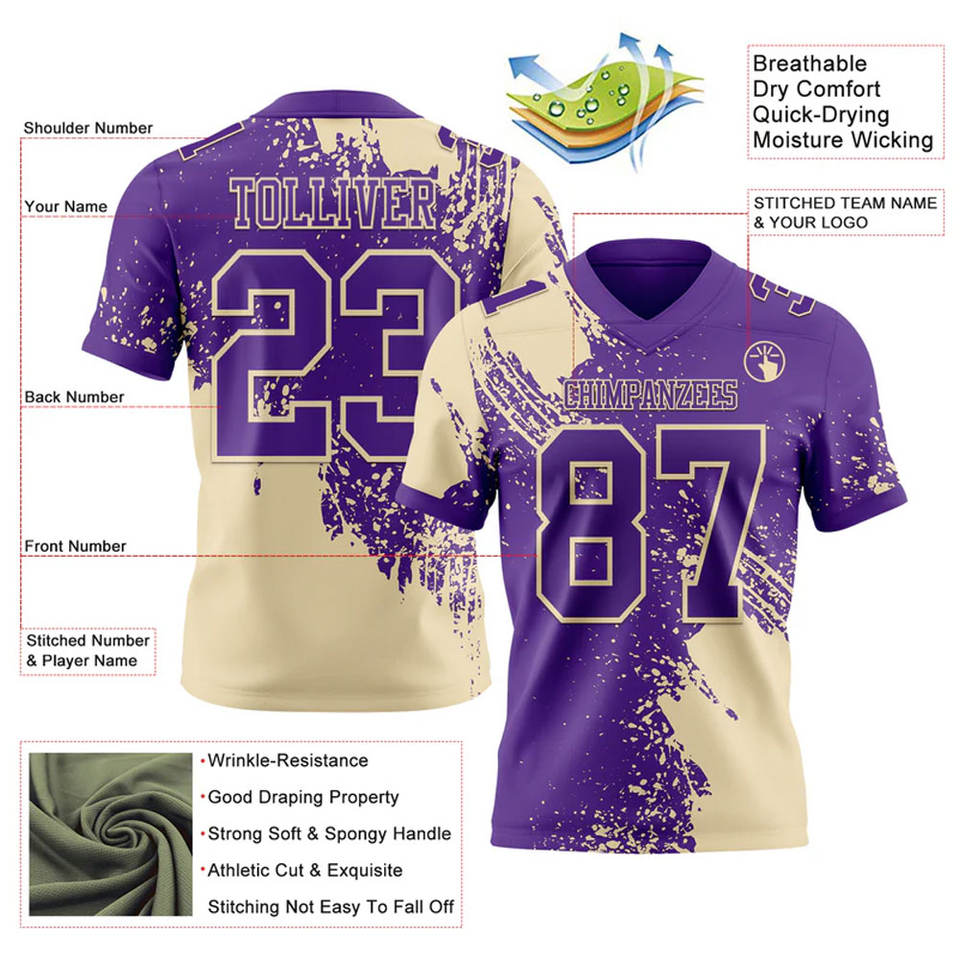 เสื้อฟุตบอลอเมริกันแขนสั้น โพลีเอสเตอร์ 100% สำหรับผู้ใหญ่และเด็ก ระบายอากาศได้ดี ดีไซน์ไซส์ใหญ่พิเศษ พร้อมลายพิมพ์แบบ Sublimation