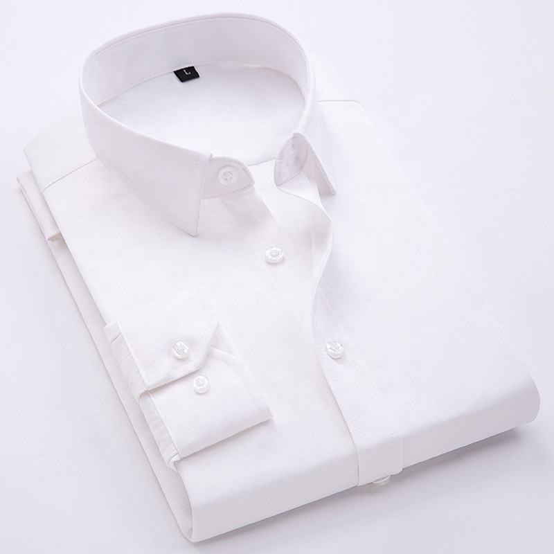เสื้อเชิ้ตทำงานผู้ชาย แขนยาว สีพื้น ดำ ขาว กรมท่า ชมพู ฟ้า ผ้าโพลีเอสเตอร์ 100% ติดกระดุม สไตล์ทางการ สำหรับใส่ทำงานในออฟฟิศ