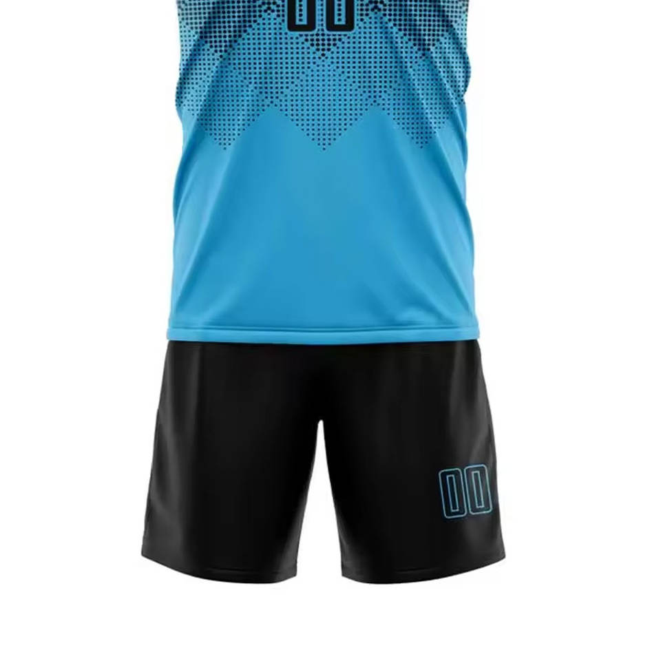 ชุดกีฬาโพลีเอสเตอร์ 100% ระบายอากาศได้ดี พิมพ์ลายด้วยความร้อน ชุดฟุตบอลขาสั้น ผลิตที่เมืองเซียลคอต ประเทศปากีสถาน บริการ OEM ป้องกันแบคทีเรีย