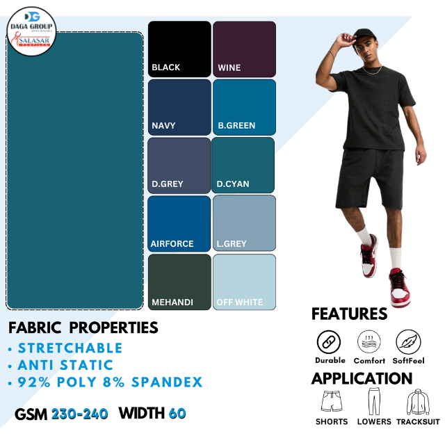 ลักษณะ:ป้องกันไฟฟ้าสถิต, หดทน, Stain Repellent, กันน้ำ, ด่วนแห้ง, ริ้วรอยทน, ป้องกันรังสียูวี, ป้องกันการดึง, ต่อต้านแบคทีเรีย