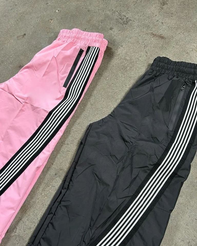 กางเกงวอร์มผ้าโพลีเอสเตอร์สำหรับทั้งชายและหญิงกางเกงลายทางแบบลำลองมีกระเป๋าน้ำหนักเบาดีไซน์ระดับกลางสำหรับผู้ชาย100% งานตามสั่ง
