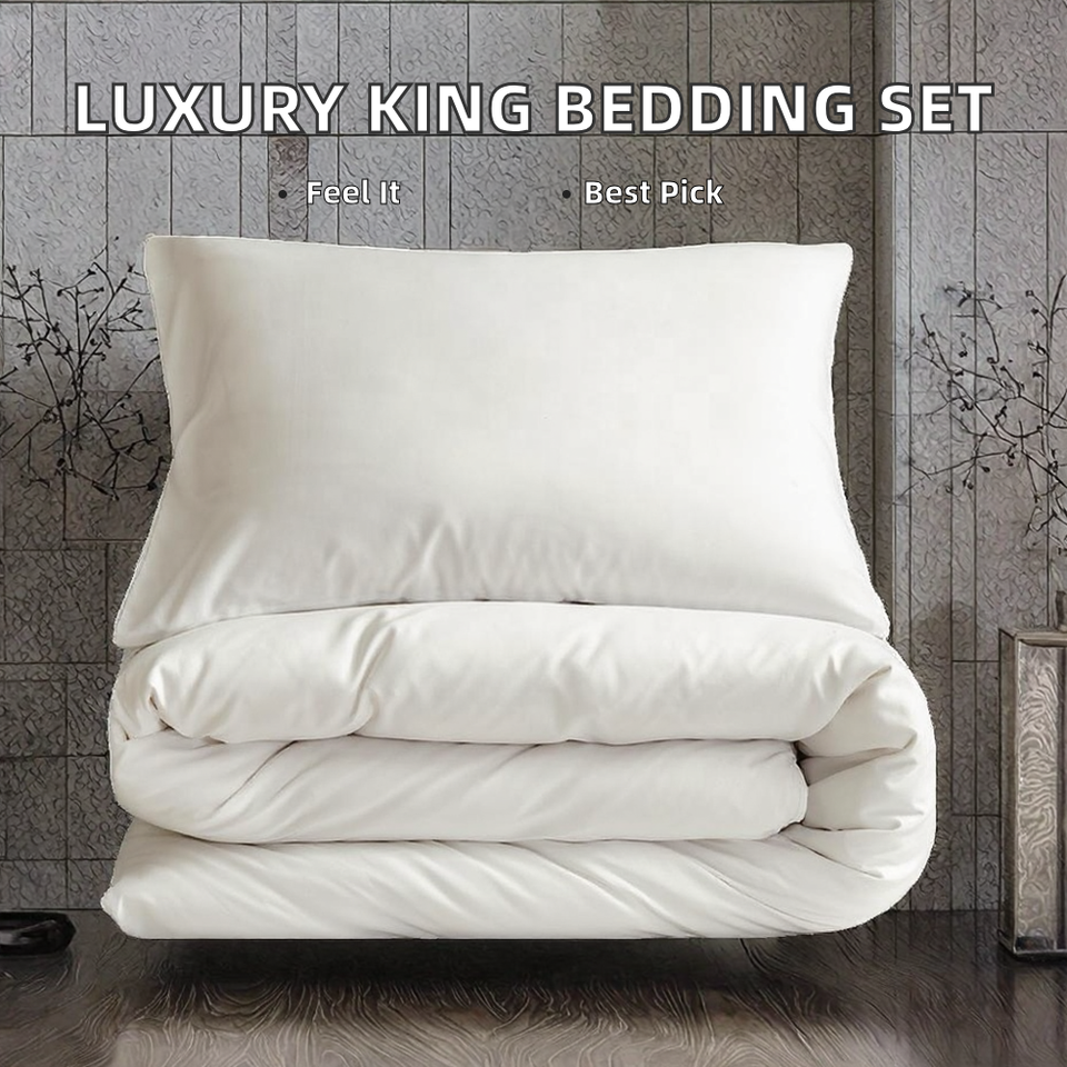 ชุดเครื่องนอนคิงไซส์ ผ้าโพลีเอสเตอร์ทอ 100% ปรับแต่งได้ เป็นมิตรกับสิ่งแวดล้อม 200TC ลายเรียบ สไตล์ยุโรปอเมริกัน ใช้ได้ทุกฤดู