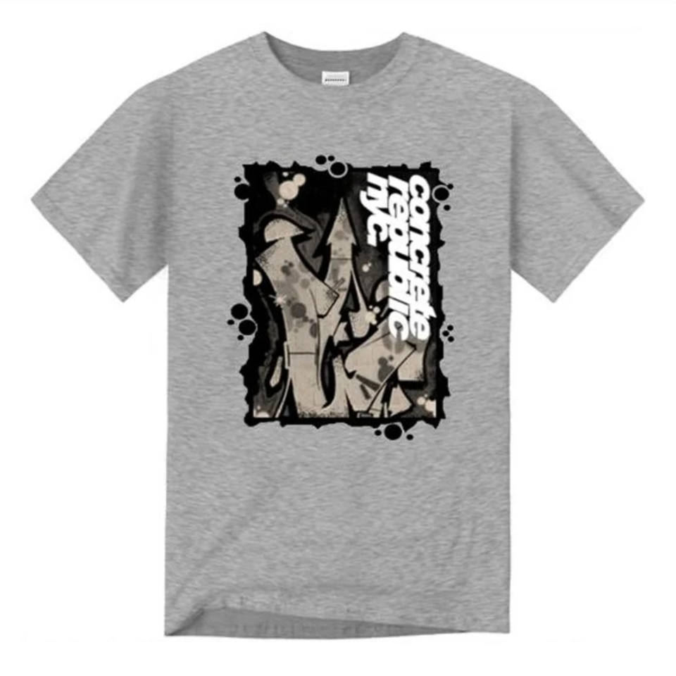 เสื้อยืดผ้าฝ้ายลายกราฟิกสำหรับผู้ชายสไตล์ฮิปฮอปผ้าถักพิมพ์ลายดีไซน์100%