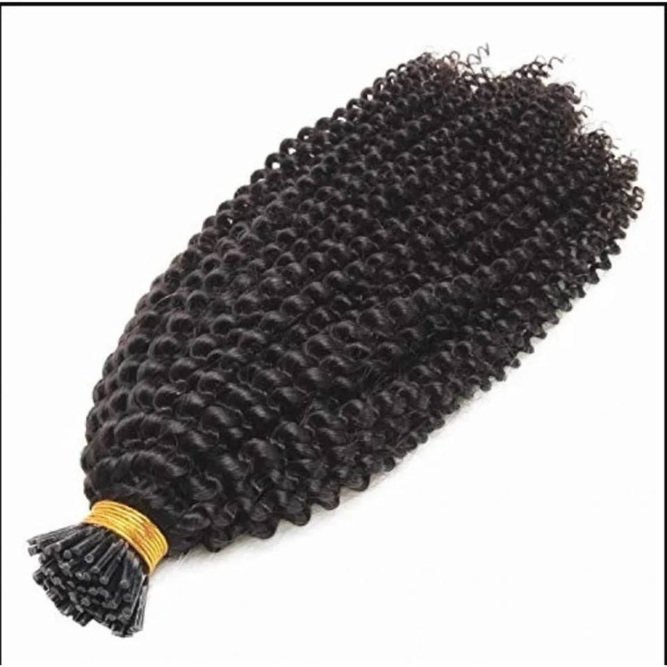 100% ผมเรมี่ผมต่อแบบพรีเมี่ยมผมต่อแบบวงแหวนขนาดเล็กหยิกเป็นลอนสีดำธรรมชาติจากอินเดีย