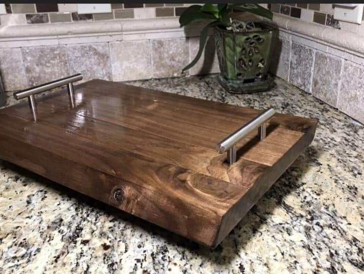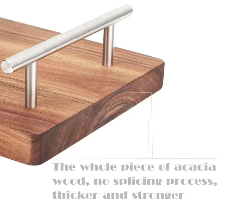 ถาดเสิร์ฟไม้กระถินณรงค์คุณภาพพรีเมียม 100% เป็นมิตรกับสิ่งแวดล้อม พร้อมหูจับโลหะ ทำด้วยมือ สไตล์โบราณ สำหรับเครื่องดื่ม ชั้นเดียว ใช้กับเครื่องล้างจานได้
