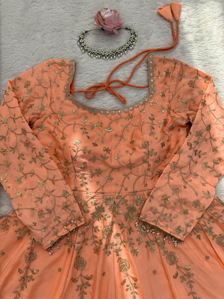 ชุดเดรส Anarkali ผ้าไหมชีนอนแท้ 100% ดีไซน์หรูหรา ประดับด้วยงานปักและเลื่อมหลากหลายแบบ สำหรับงานปาร์ตี้และงานพิธีต่างๆ