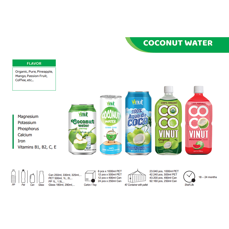 น้ำมะพร้าวบริสุทธิ์100% 1000มล. (แพ็ค24) vinut, จากพืช, Non-GMO, ไม่มีน้ำตาลเพิ่ม, อิเล็กโทรไลต์ที่จำเป็น, ผู้ค้าส่ง