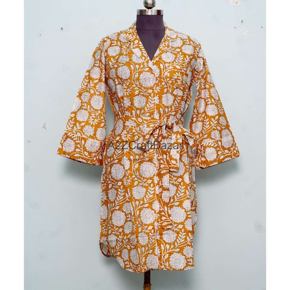 เสื้อเชิ้ตยาวสไตล์กิโมโนสำหรับผู้หญิง ผ้าฝ้ายแท้ 100% ลายดอกไม้ คอวี แขนสามส่วน ทรงเข้ารูป ติดกระดุมด้านหน้า