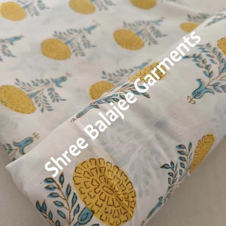 ผ้าคอตตอนแท้100% ผ้าพิมพ์ลายดอกไม้สไตล์อินเดียสีเหลืองอ่อนปกผ้าม่าน