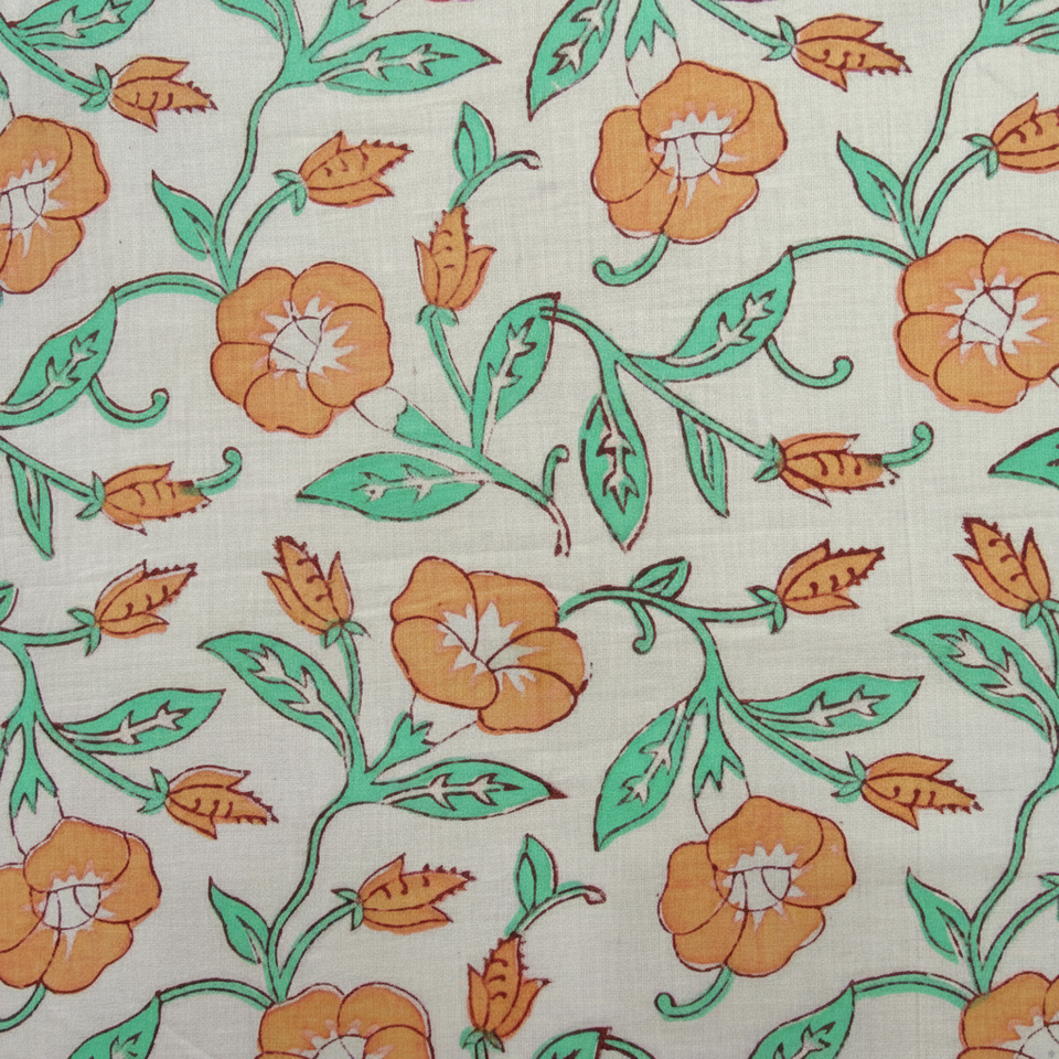 ผ้ามัสลินคอตตอนเนื้อนุ่มพิมพ์ลายดอกไม้งานแฮนด์เมดสวยงาม
