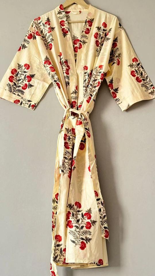 100% Pure Cotton Indian Block Printed Kimono Robe Quirky Beach Cover Up/Comfy Maternity Mom for Summer Spring Women's Sleepwear