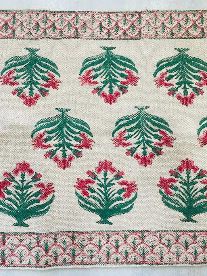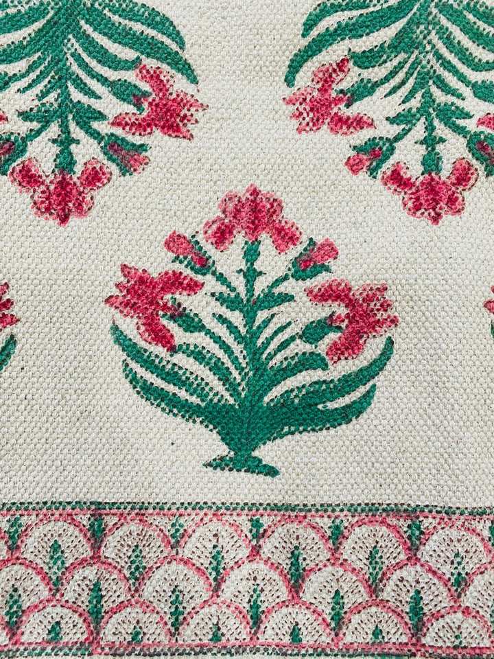 พรมปูพื้นพิมพ์ลายบล็อกด้วยมือผ้าฝ้ายแท้สไตล์อินเดียสำหรับใช้ในบ้านรถกอล์ฟปิกนิกตั้งแคมป์