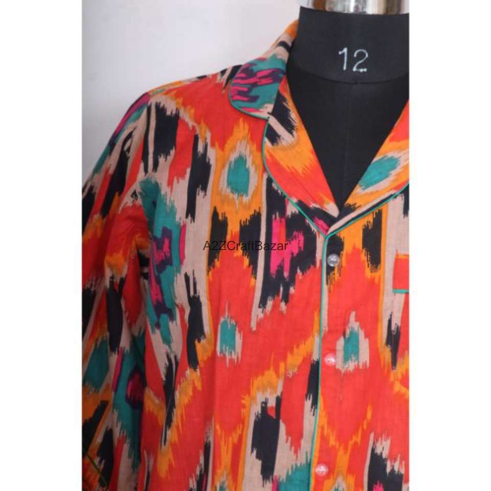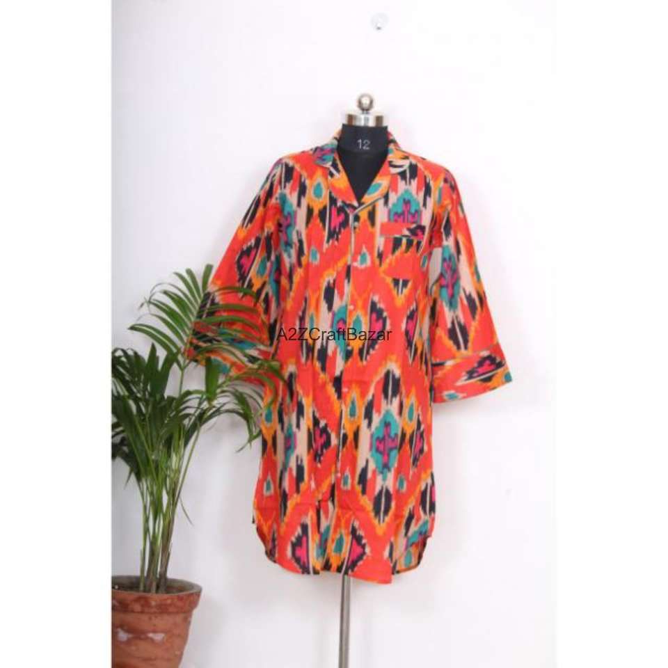 100% Pure Cotton Long Shirt Dress V-Neck 3/4 Sleeve Button Front Sexy Club Style Bodycon Evening Formal Block Printed Front