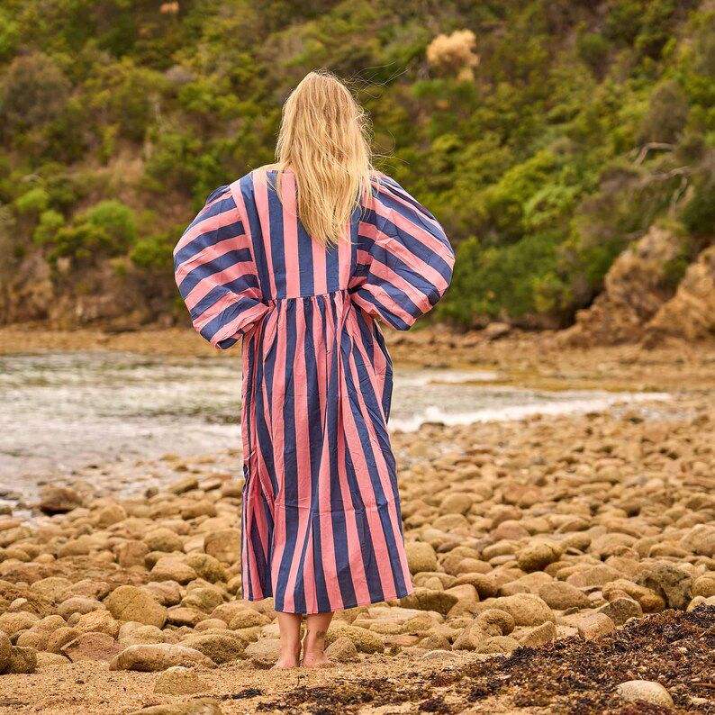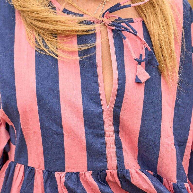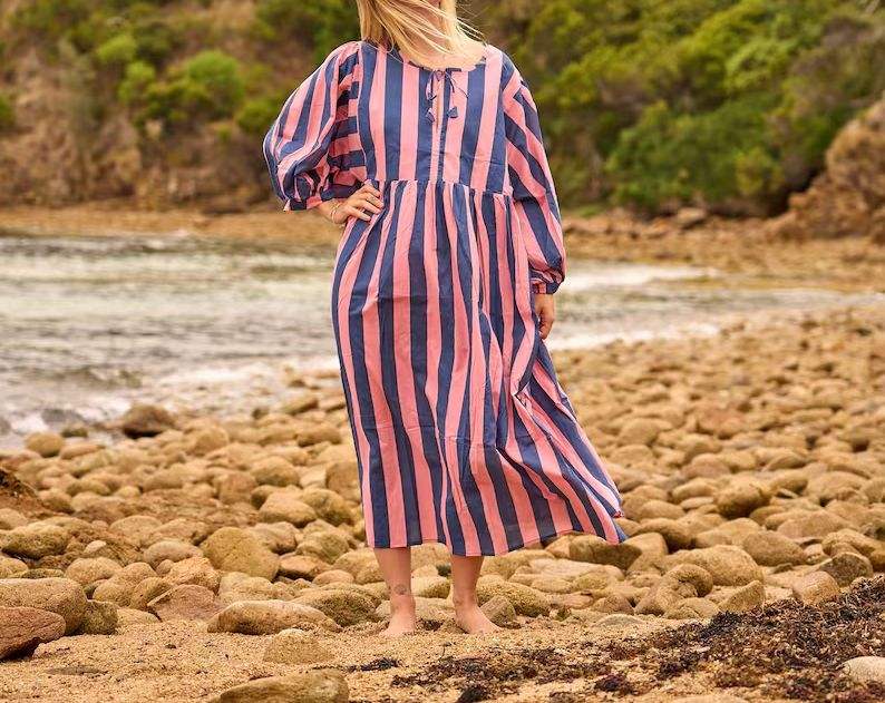 100% เดรสผ้าฝ้ายแท้ลายพระอาทิตย์ตกสำหรับผู้หญิงเดรสคลุมเข่าหลากสีสดใสทรงหลวมระบายอากาศน้ำหนักเบาสำหรับฤดูร้อน